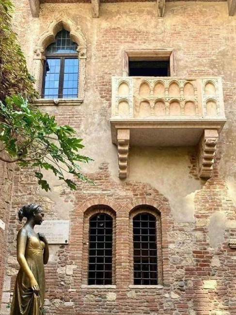 Entering the courtyard off Via Cappello, you’ll find Juliet’s house, where the walls are lined up to two metres high with love notes - many stuck on with chewing gum! Above, the famous balcony draws tourists eager to snap photos against this romantic backdrop.